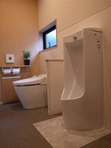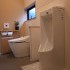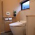 木ルーバーによって奥のトイレへの視線をシャットアウト!手前の装飾にて視線を引いています。