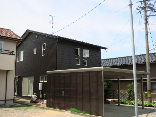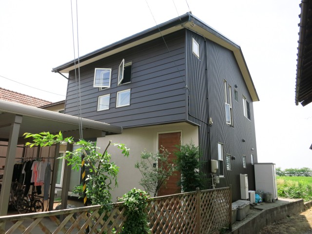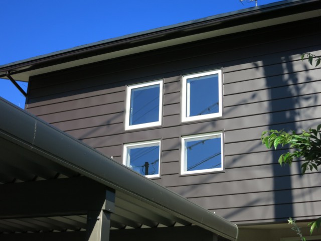 『板金よろい張り』の正面外壁は、木板張りのようにやさしいイメージになりました。