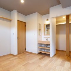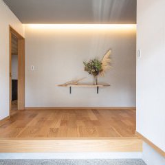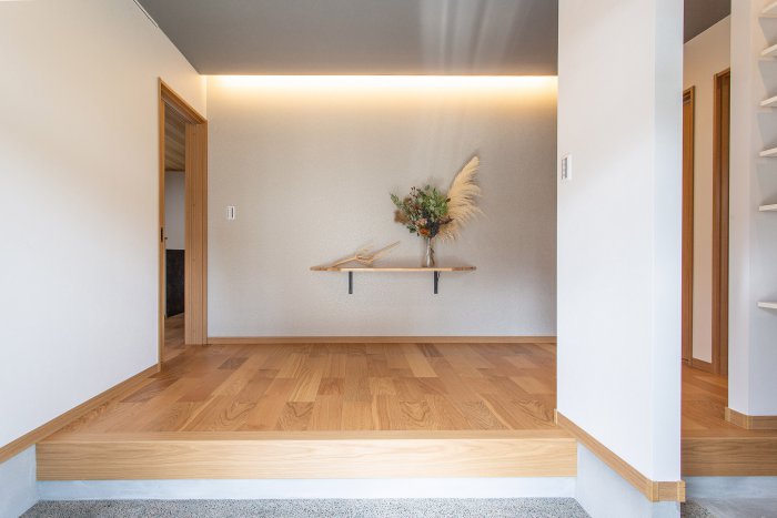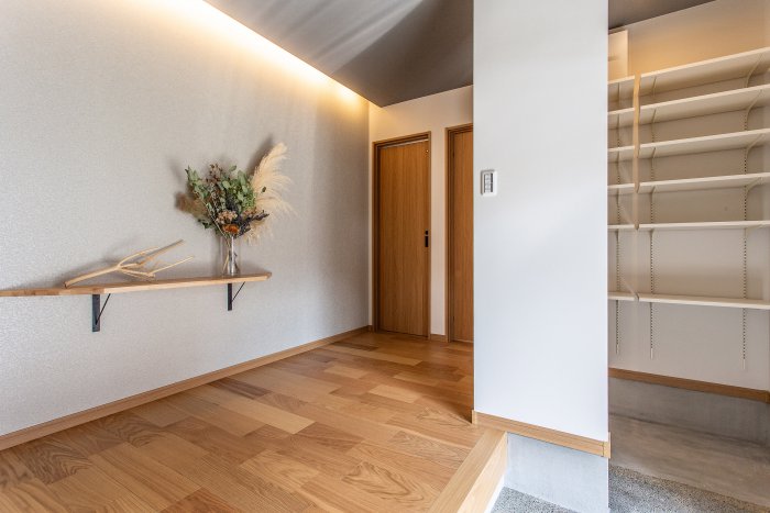 奥様の趣味を生かせるように玄関ホールには飾り棚を設けて