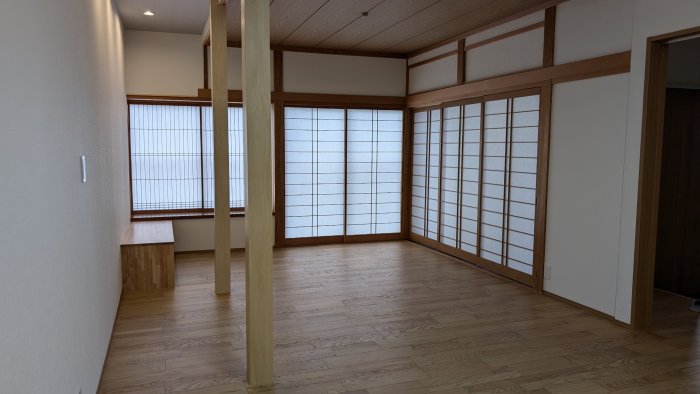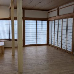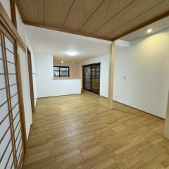 和室が続いていた部屋を片方はリビングに、もう片方は土間にすることで玄関からもそのまま入れる回遊的な導線が出来ました。 床が汚れても大丈夫な土間はお子さんの遊び場や趣味の場など多様な使い方が可能で、子育て世帯にはぴったりです! 障子や欄間など和の趣も残しながら、明るく開放的な和モダン空間へと生まれ変わりました。