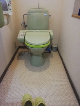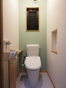 淡いグリーンが落ち着く優しい雰囲気のトイレに