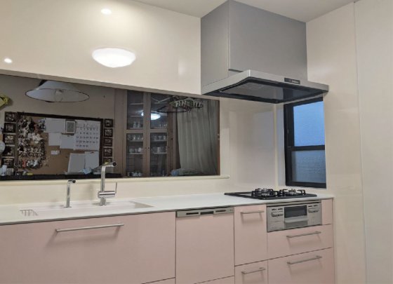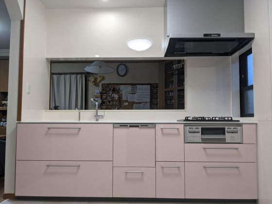 桜色のキッチンが素敵な白山市K様邸 キッチンリフォーム工事です。