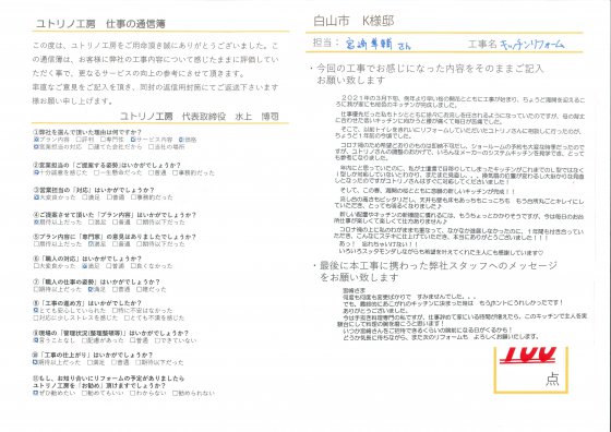 との嬉しいお言葉も頂き、大変うれしく思っております。